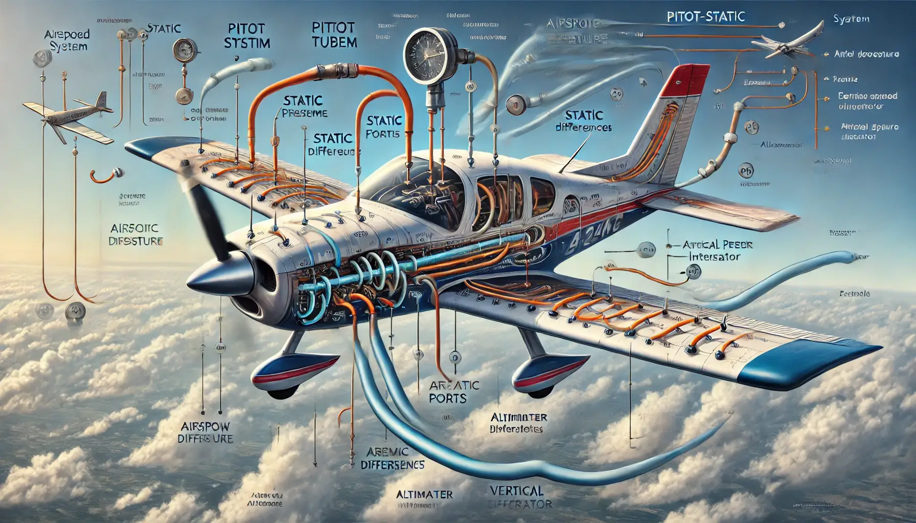 1. Obstrucción en el Tubo de Pitot ✔ Puede ser causada por hielo, insectos o suciedad en la entrada del tubo. ✔ Una obstrucción total hace que el indicador de velocidad quede fijo. 📌 2. Bloqueo en los Puertos Estáticos ✔ Sucede si los puertos están sellados accidentalmente o bloqueados por contaminantes. ✔ Puede generar altitudes incorrectas o variaciones erráticas en el VSI. 📌 3. Fugas en las Líneas del Sistema ✔ Las conexiones deterioradas pueden causar pérdida de presión estática, afectando la altitud y velocidad indicada. 📌 4. Error por Condensación de Agua ✔ La acumulación de humedad dentro de las líneas del sistema puede provocar variaciones en las lecturas de los instrumentos.